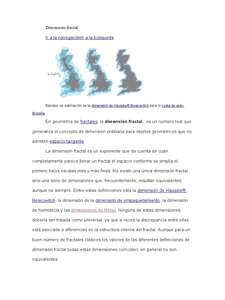 dimensión fractal todas estas dimensiones coinciden, en general no son