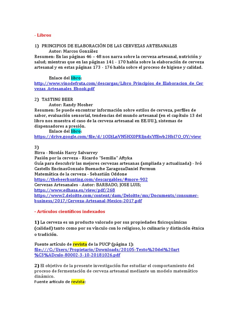 Resumen: En las pá ginas 46 – 48 nos narra sobre la cerveza artesanal, nutrició n y
