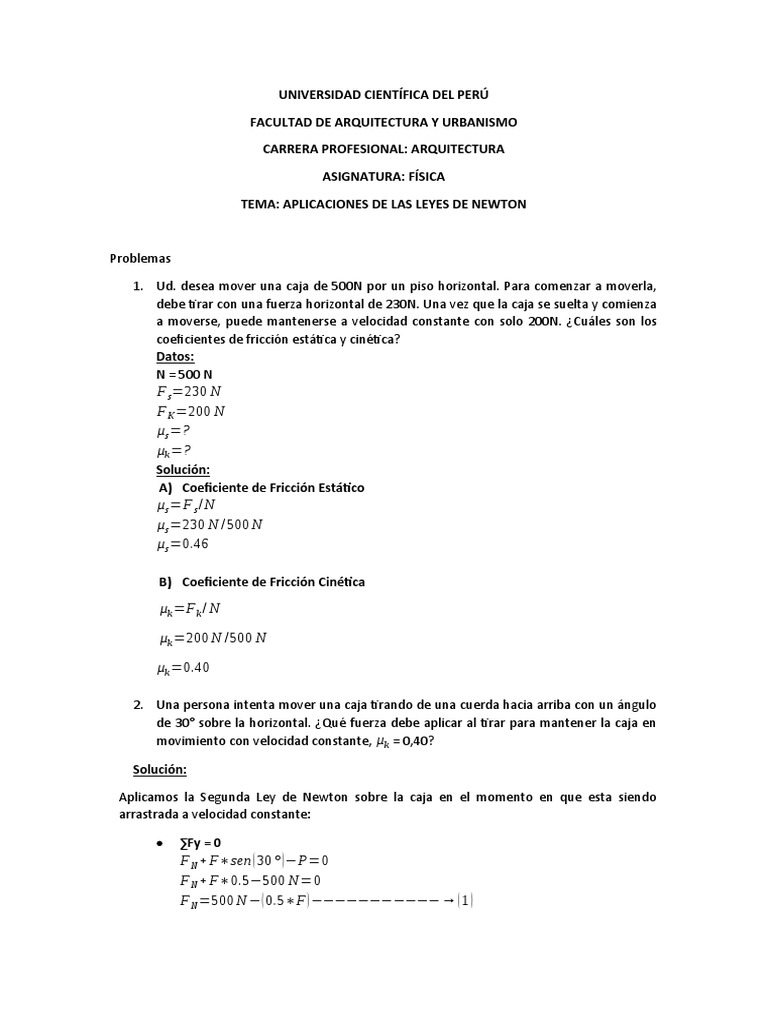 1. Ud. desea mover una caja de 500N por un piso horizontal. Para comenzar a moverla,