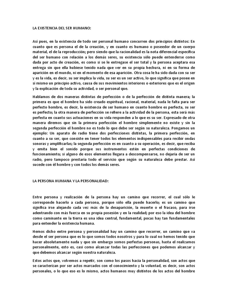 LA EXISTENCIA DEL SER HUMANO: