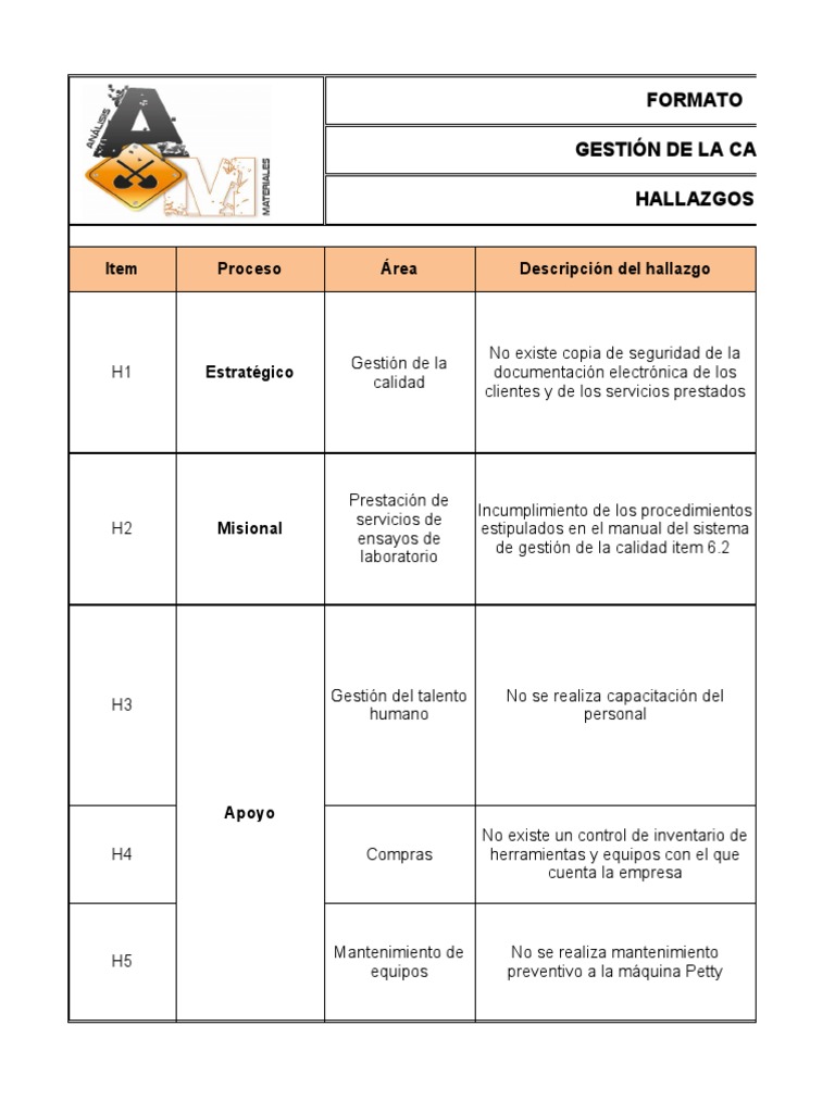 Item Proceso Área Descripción del hallazgo