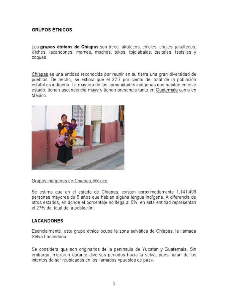 Los grupos étnicos de Chiapas son trece: akatecos, ch’oles, chujes, jakaltecos,