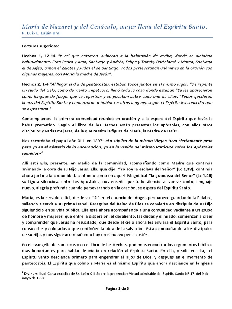 María de Nazaret y del Cenáculo, mujer llena del Espíritu Santo.