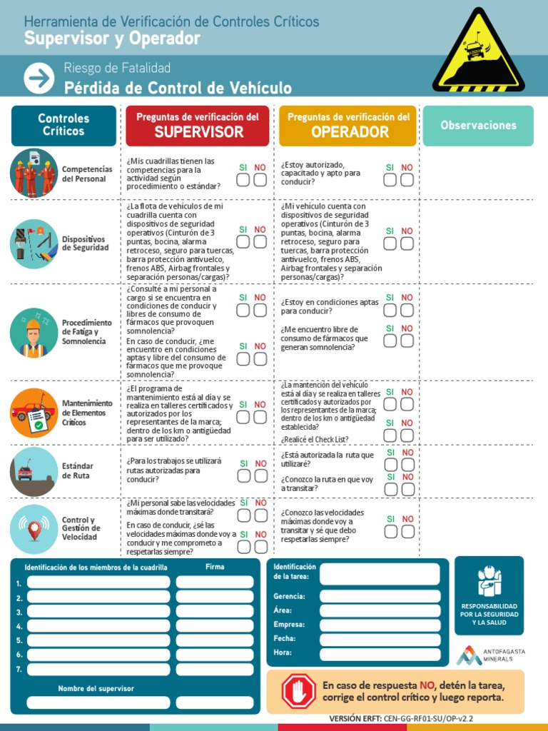 Nombre del supervisor En caso de respuesta NO, detén la tarea,