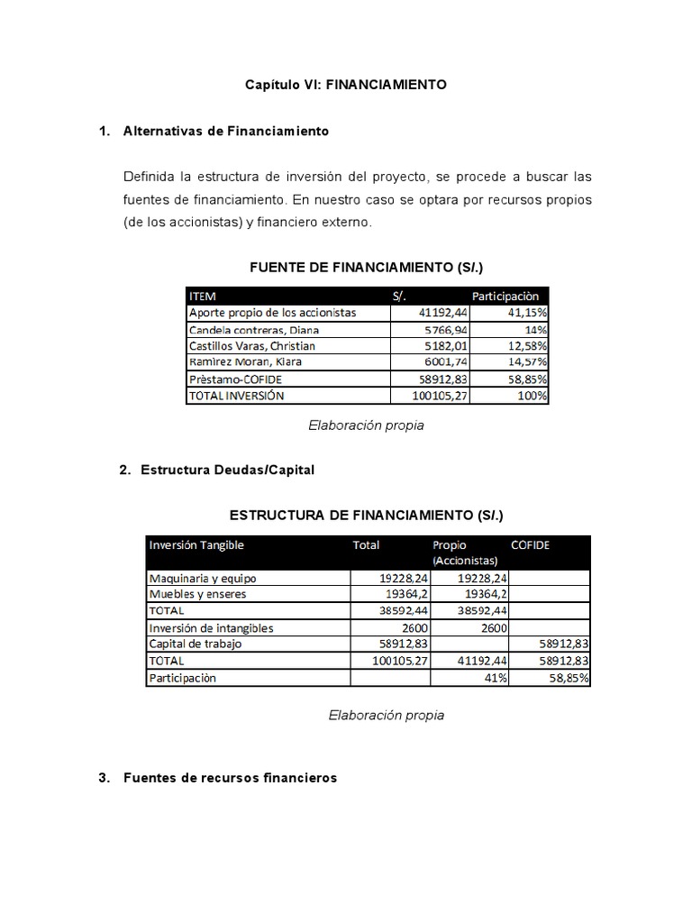 fuentes de financiamiento. En nuestro caso se optara por recursos propios