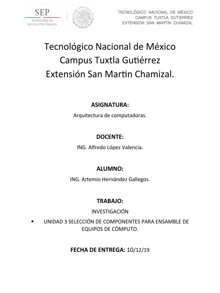 UNIDAD 3 SELECCIÓN DE COMPONENTES PARA ENSAMBLE DE