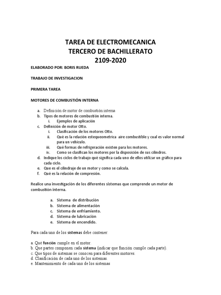 Realice una investigación de los diferentes sistemas que comprende un motor de