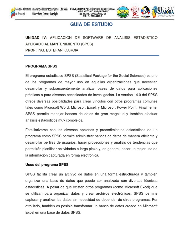Realizar un análisis del SPSS sobre los siguientes aspectos: Definición,