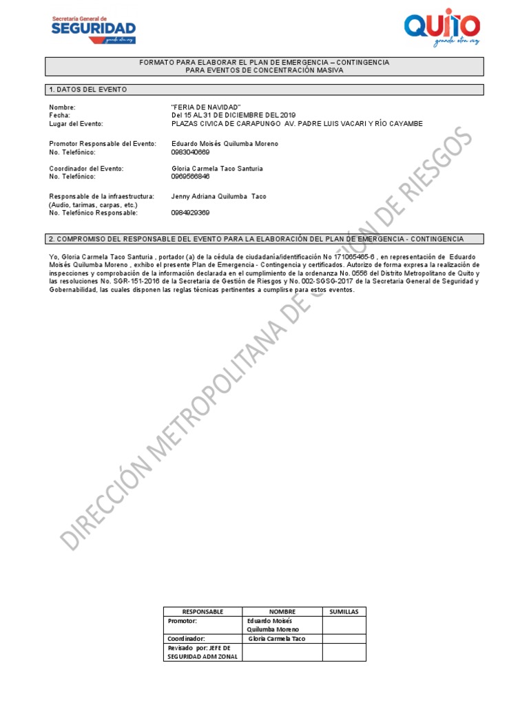 2. COMPROMISO DEL RESPONSABLE DEL EVENTO PARA LA ELABORACIÓN DEL PLAN DE EMERGENCIA - CONTINGENCIA
