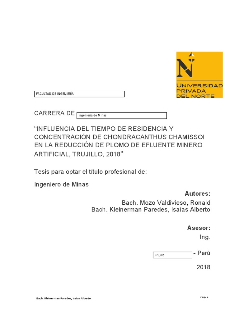 REDUCCIÓN DE PLOMO DE EFLUENTE MINERO ARTIFICIAL, TRUJILLO, 2018
