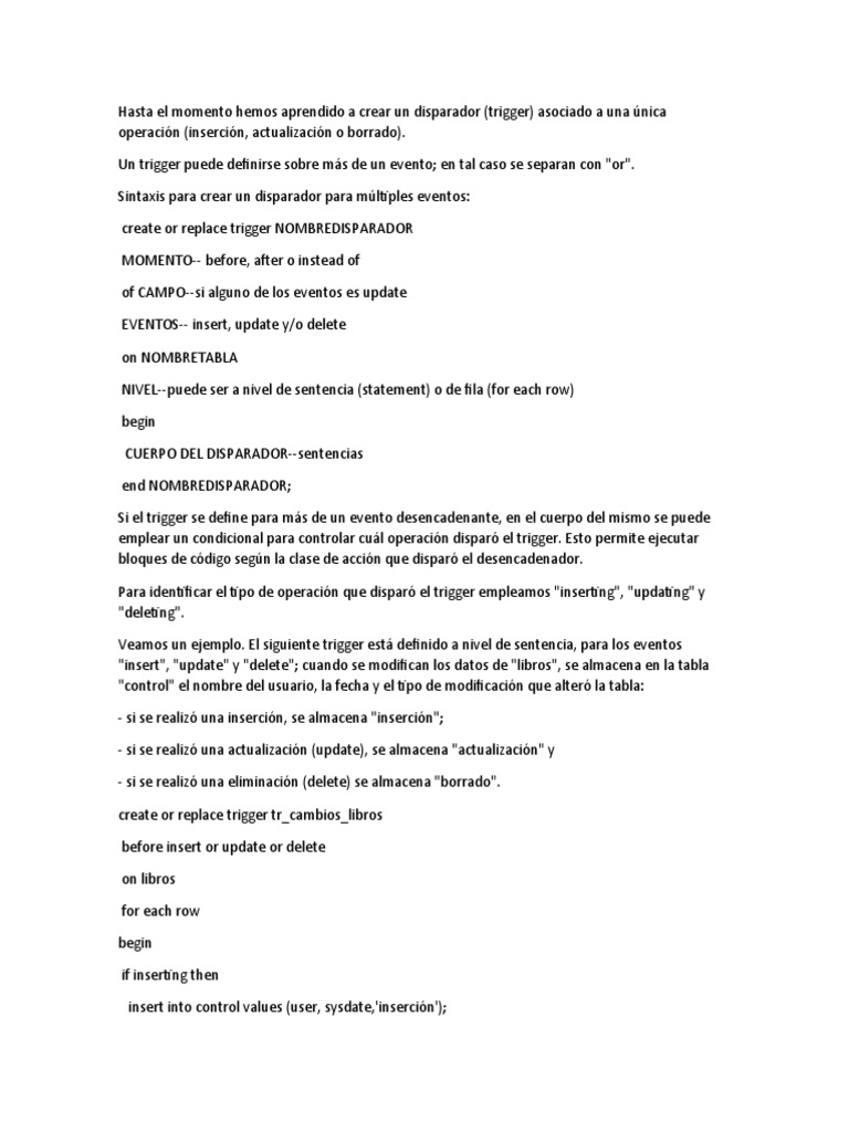 Un trigger puede definirse sobre más de un evento; en tal caso se separan con "or".