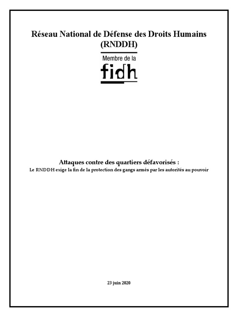 Le document décrit des attaques récentes perpétrées par des gangs armés dans plusieurs quartiers défavorisés de Port-au-Prince, notamment à La Saline, Nan Tokyo et Pont Rouge entre le 23 et …