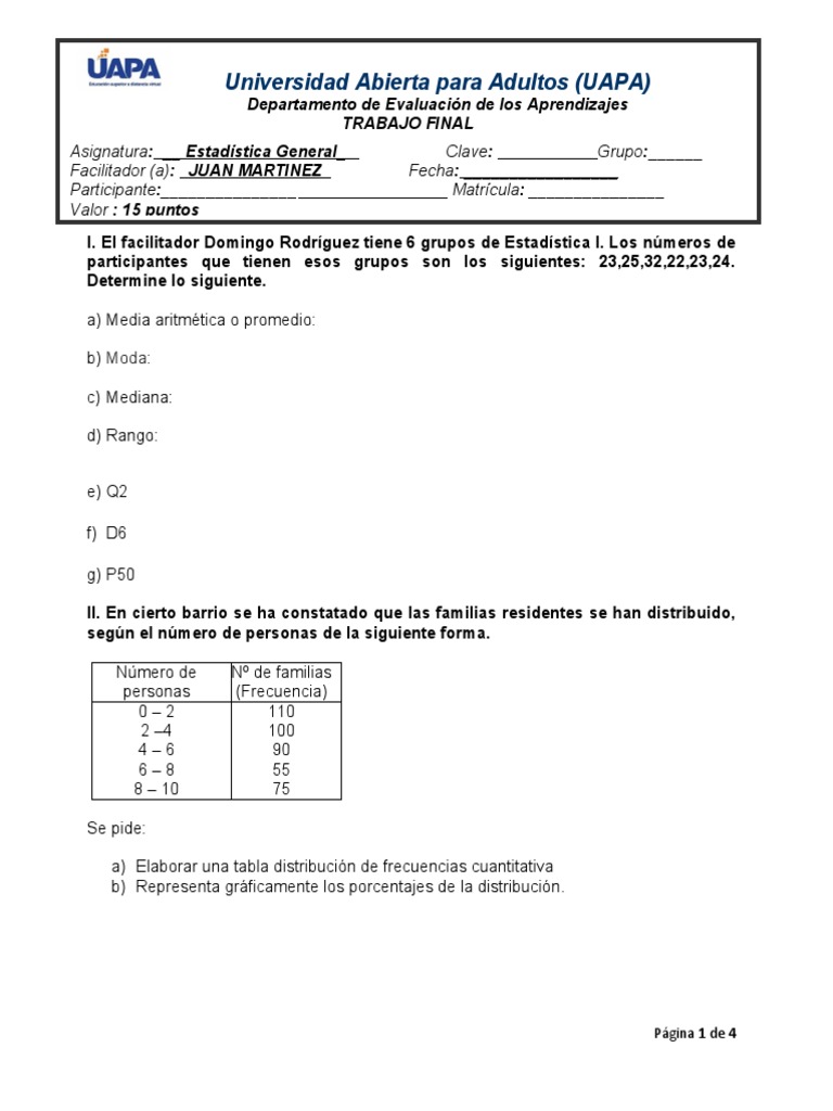 I. El facilitador Domingo Rodríguez tiene 6 grupos de Estadística I. Los números de