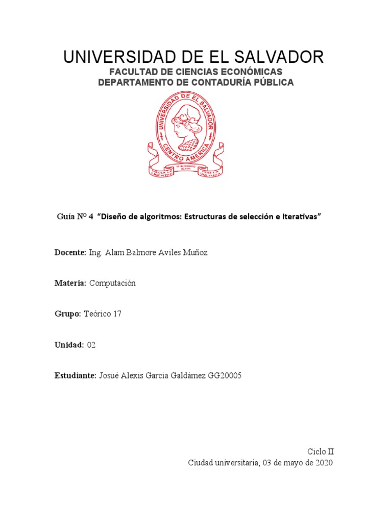 Estudiante: Josué Alexis Garcia Galdámez GG20005