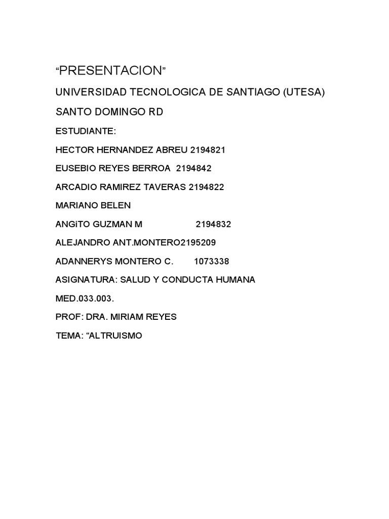 En este trabajo de investigación sobre el “ALTRUISMO” y sus diferentes sub