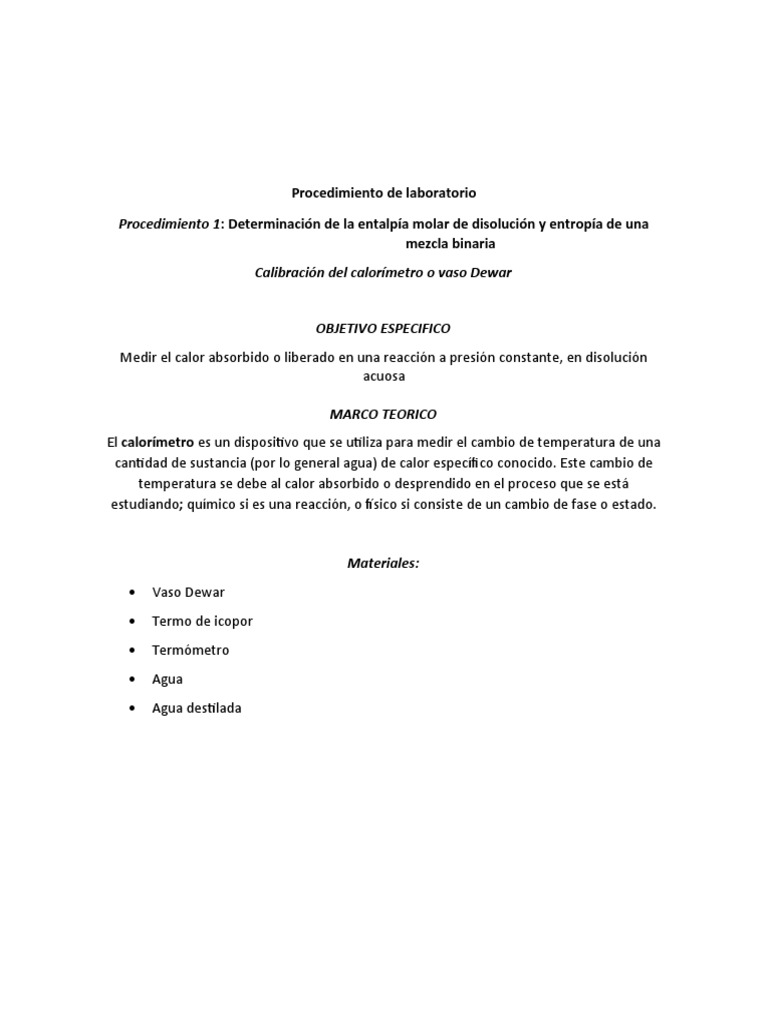 1. Lavar y secar adecuadamente el calorímetro (vaso Dewar, termo o recipiente de