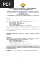 3. Determine el calor específico del recipiente (C e) de acuerdo con el balance de calor: