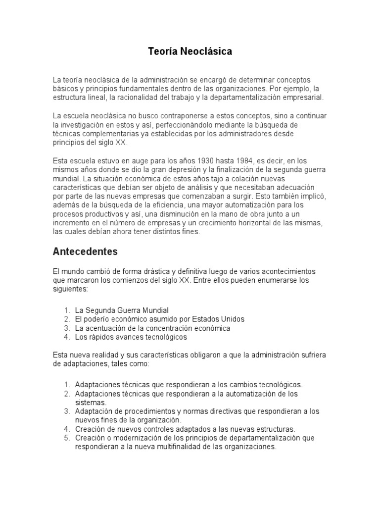 teoría neoclásica de la administración, estos fueron sus principales momentos y