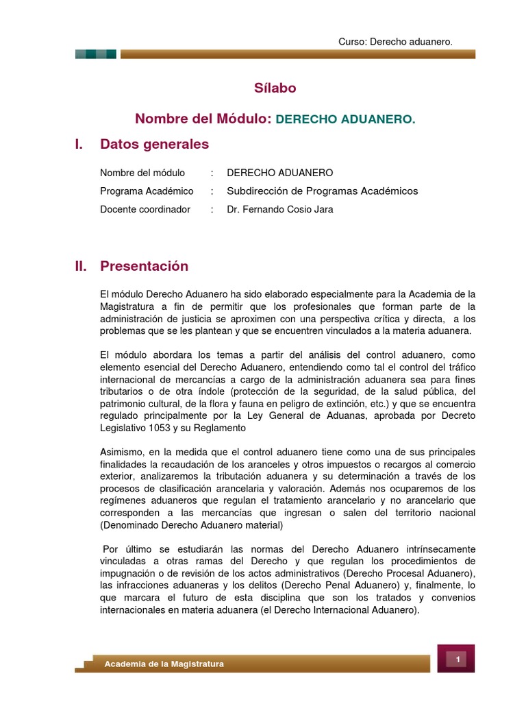 Curso: Derecho aduanero.