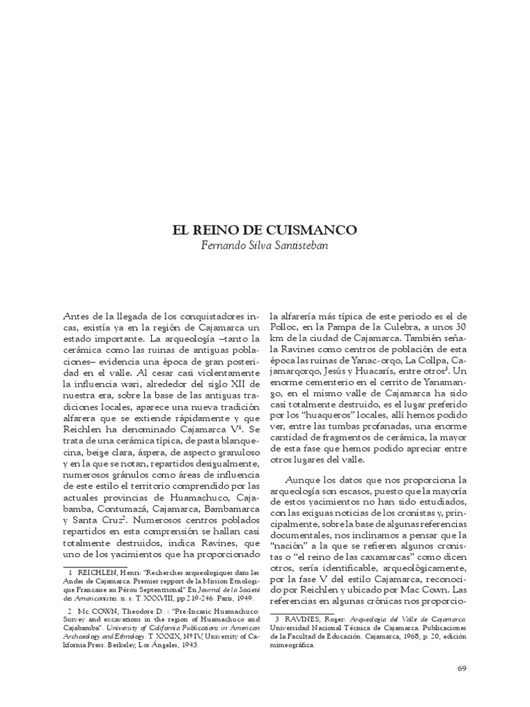 sobre Cajamarca: Año 1540”. En Revista Peruana de Cultura.