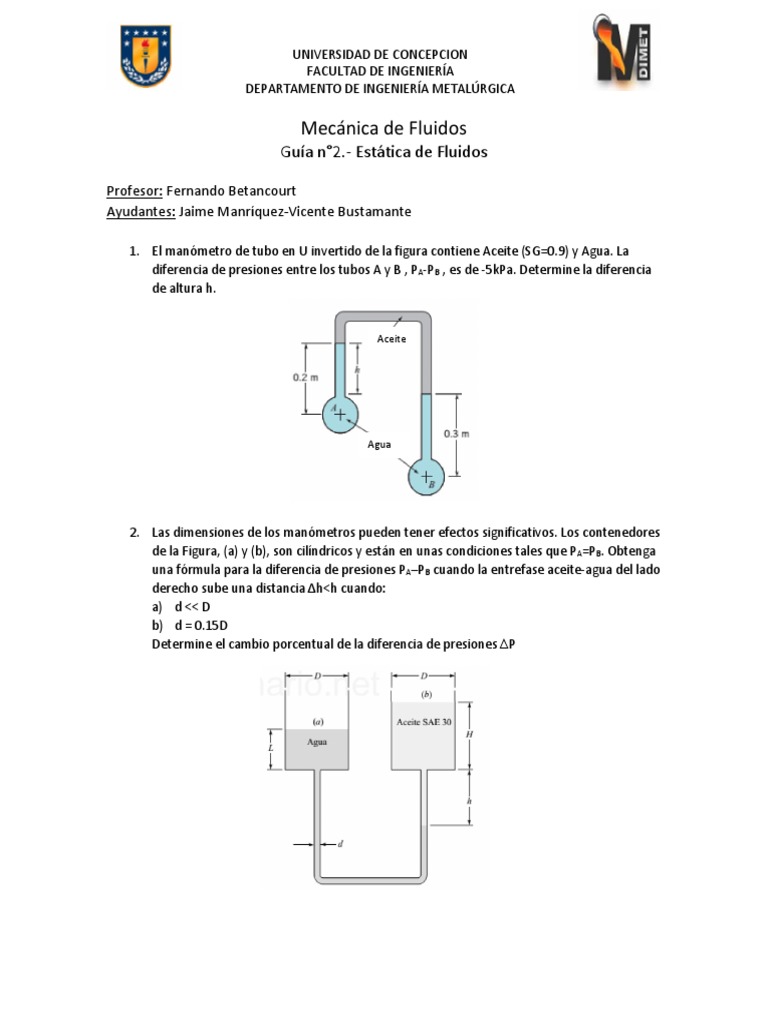 Guía n°2.- Estática de Fluidos