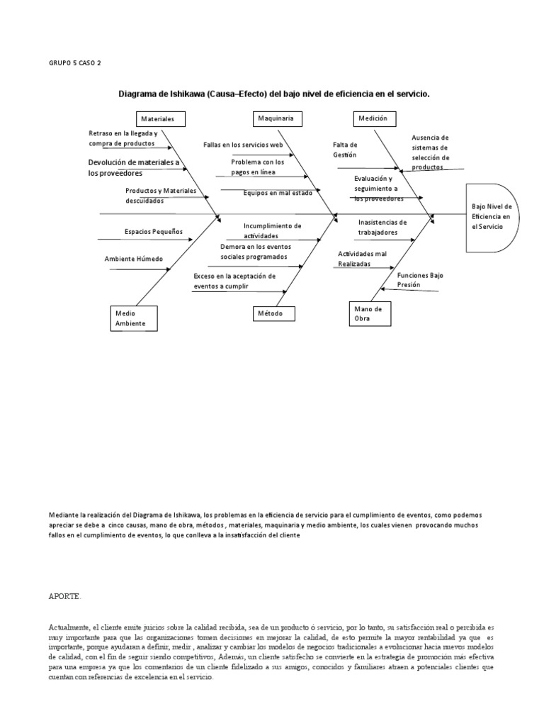 Mediante la realización del Diagrama de Ishikawa, los problemas en la eficiencia de servicio para el cumplimiento de eventos, como podemos
