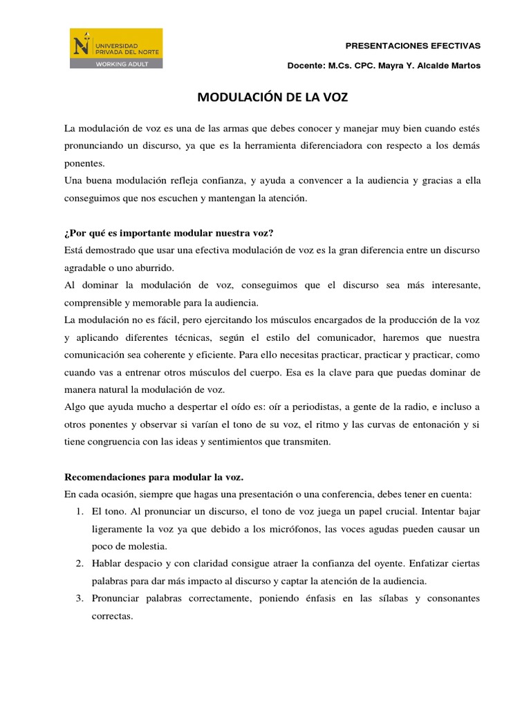 Recomendaciones para modular la voz.