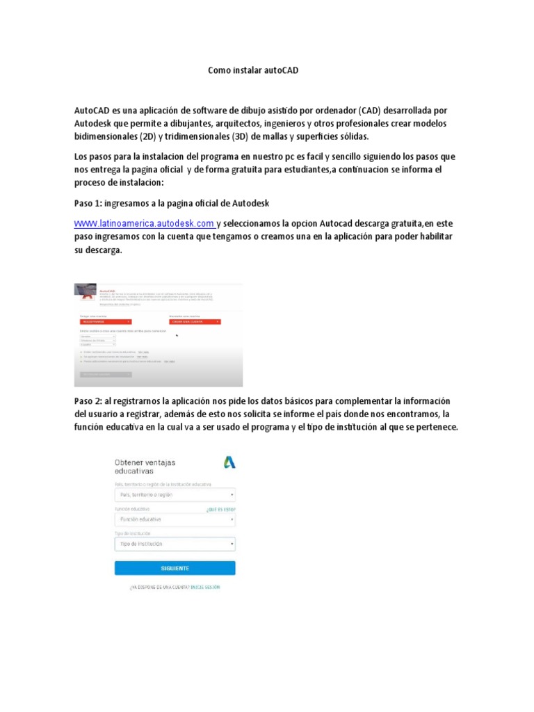 www.latinoamerica.autodesk.com y seleccionamos la opcion Autocad descarga gratuita,en este