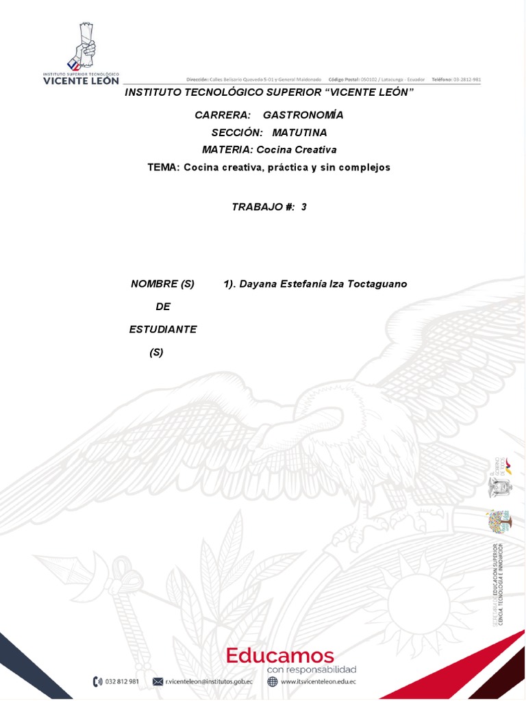 NOMBRE (S) 1). Dayana Estefanía Iza Toctaguano