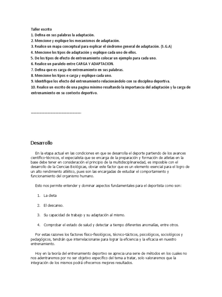 10. Realice un escrito de una pagina mínimo resaltando la importancia del adaptación y la carga de