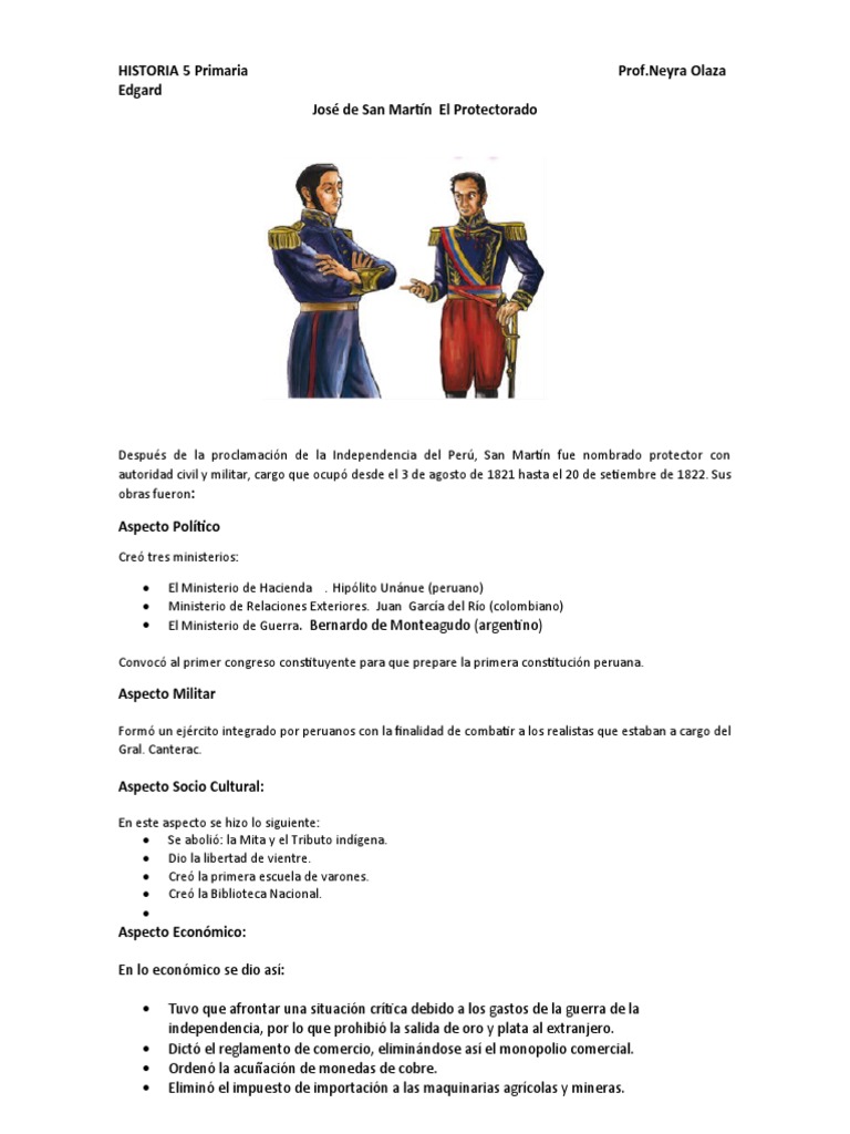 Después de la proclamación de la Independencia del Perú, San Martín fue nombrado protector con