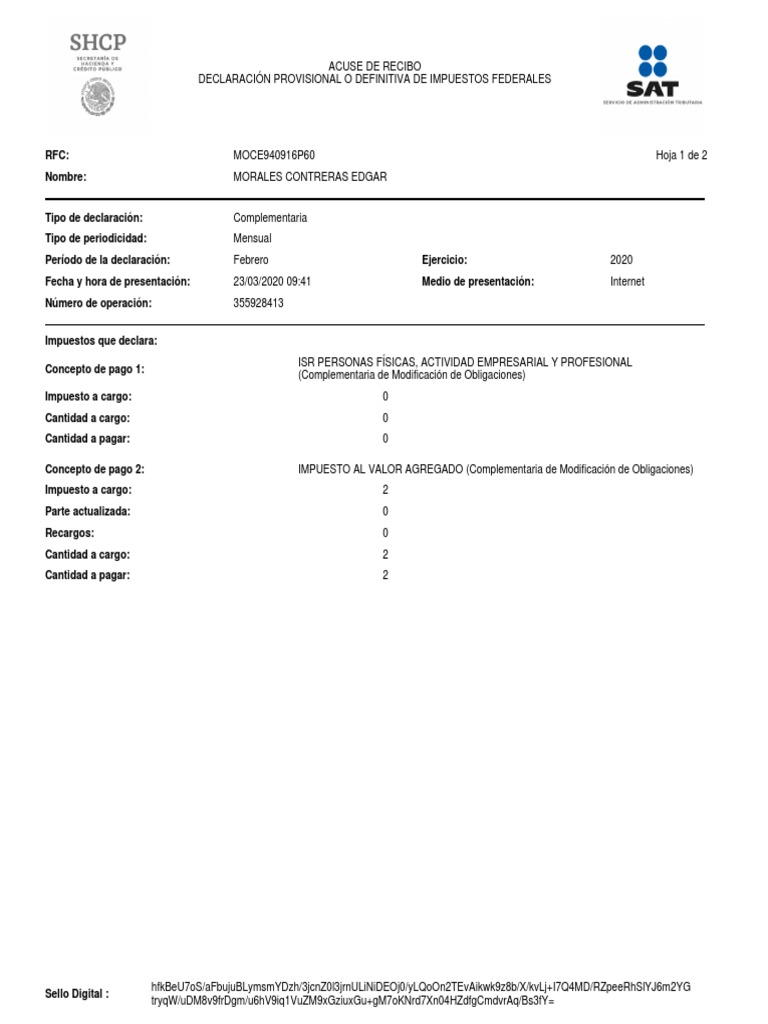 RFC: MOCE940916P60 Hoja 1 de 2