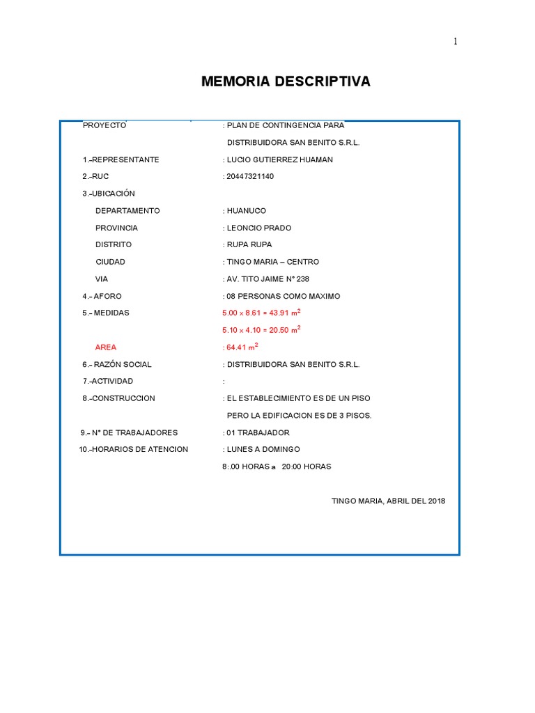MEMORIA DESCRIPTIVA