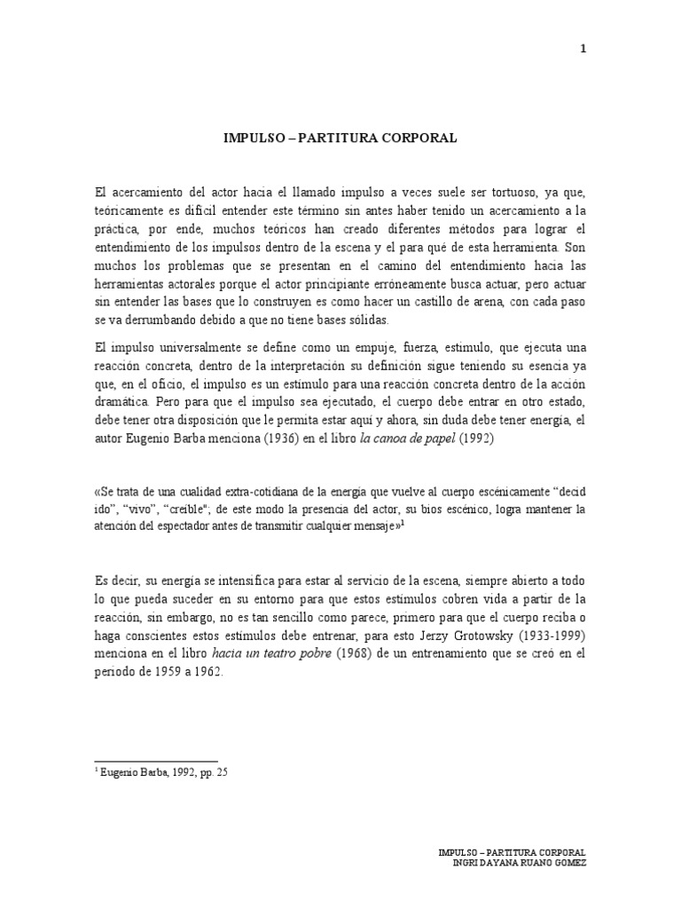 autor Eugenio Barba menciona (1936) en el libro la canoa de papel (1992)
