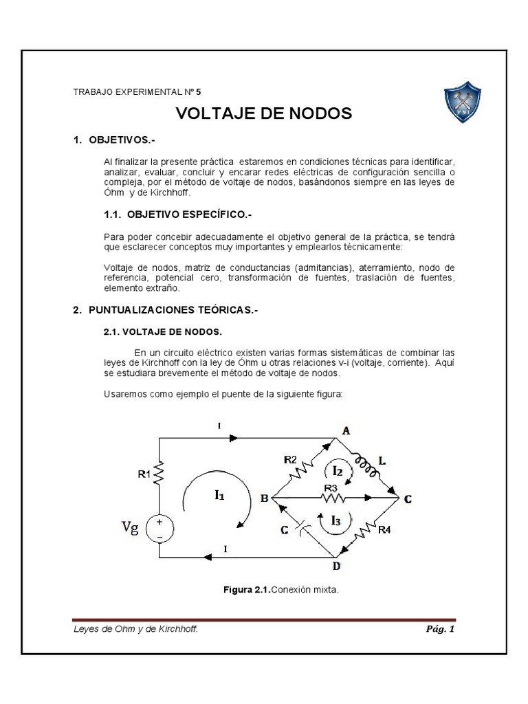 tensiones de los nudos aplicando la segunda ley de Kirchhoff. Así,