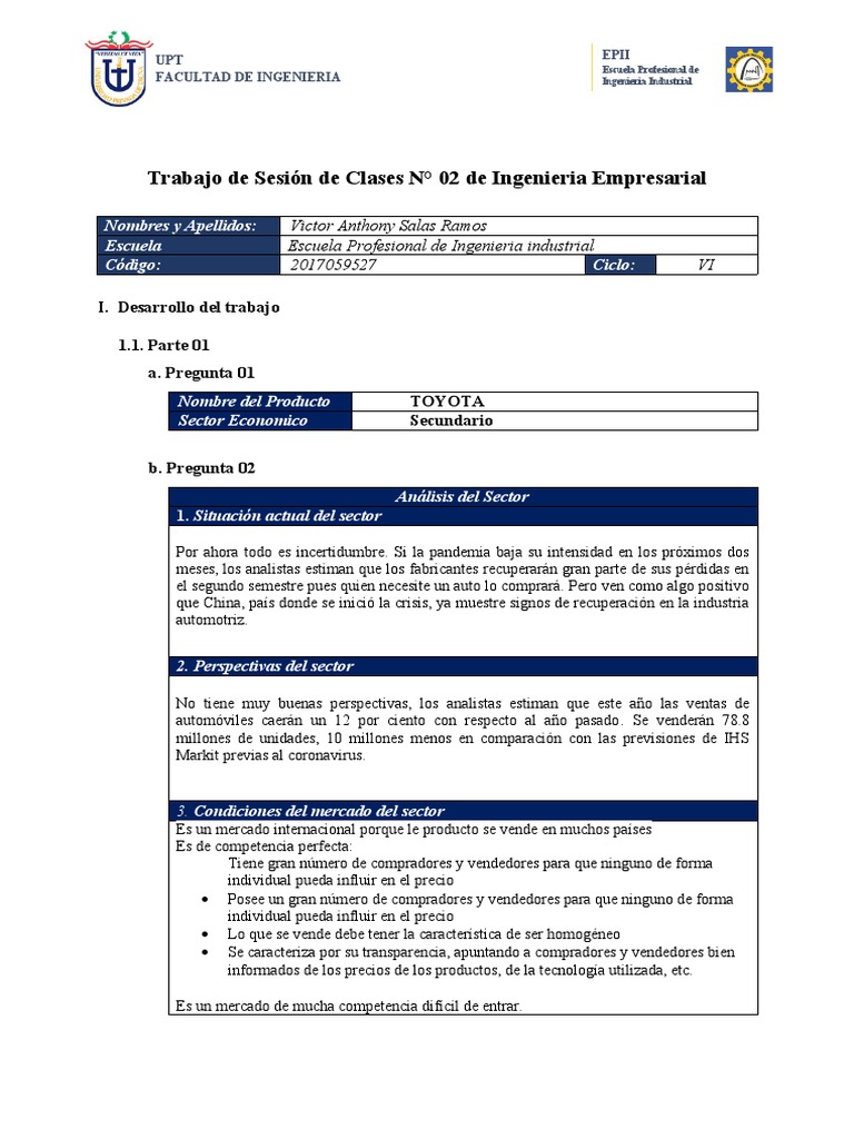 Trabajo de Sesión de Clases N° 02 de Ingenieria Empresarial