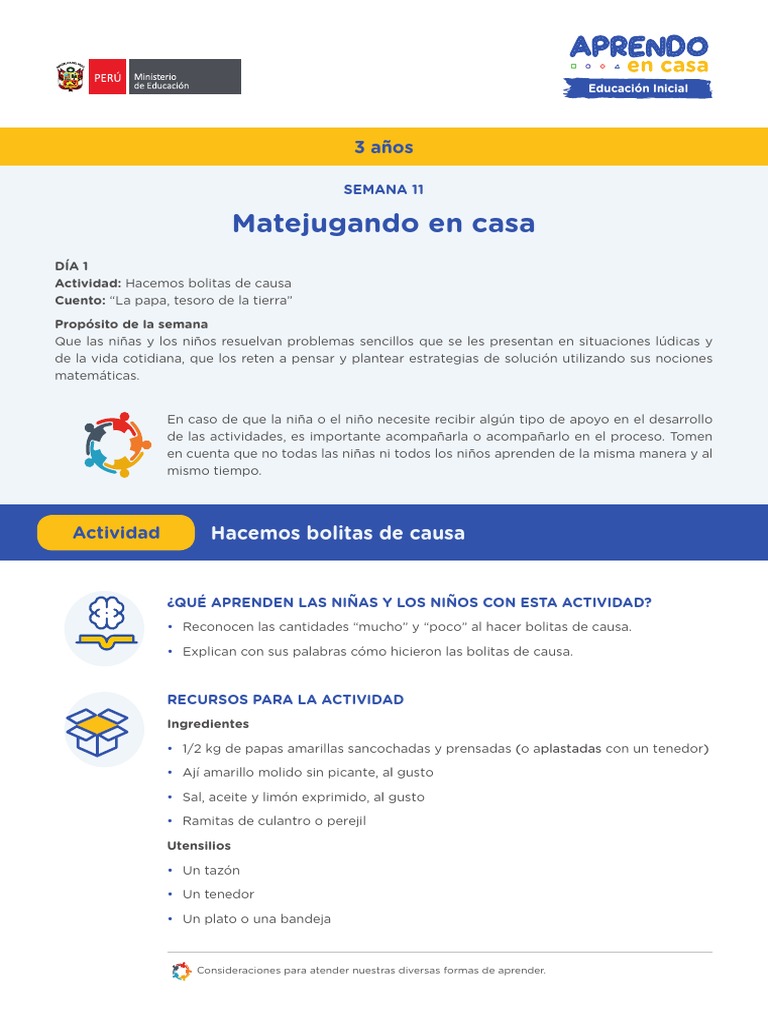 • Cuéntale a tu niña o niño que hoy tienen la misión de preparar unas bolitas de causa