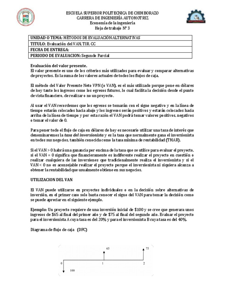 TITULO: Evaluación del VAN, TIR. CC