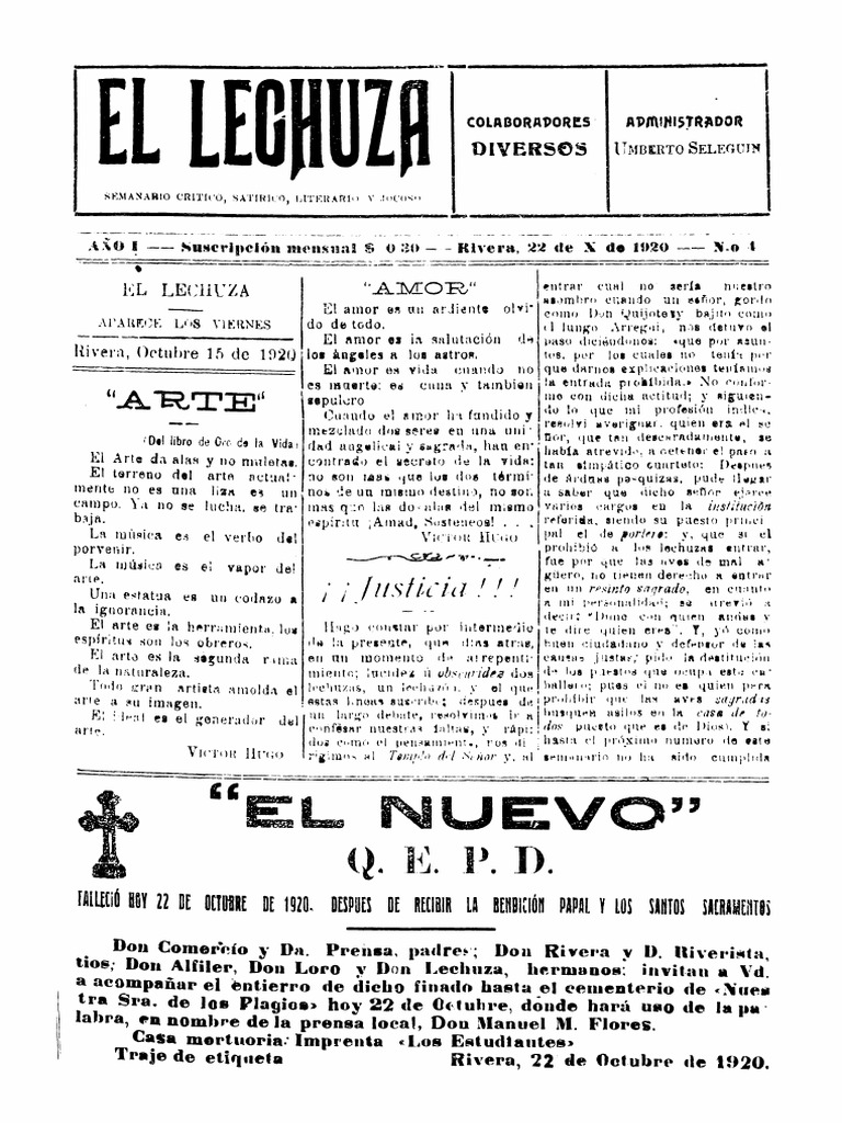 Rivera, Octubre 15 de 1020 los á n g e l e s a los a s t r o * . tos, por los cuales no teñí*! per