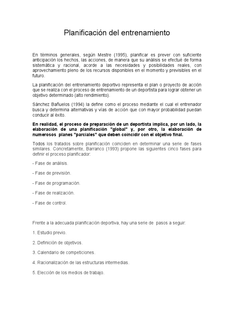La planificación del entrenamiento deportivo representa el plan o proyecto de acción