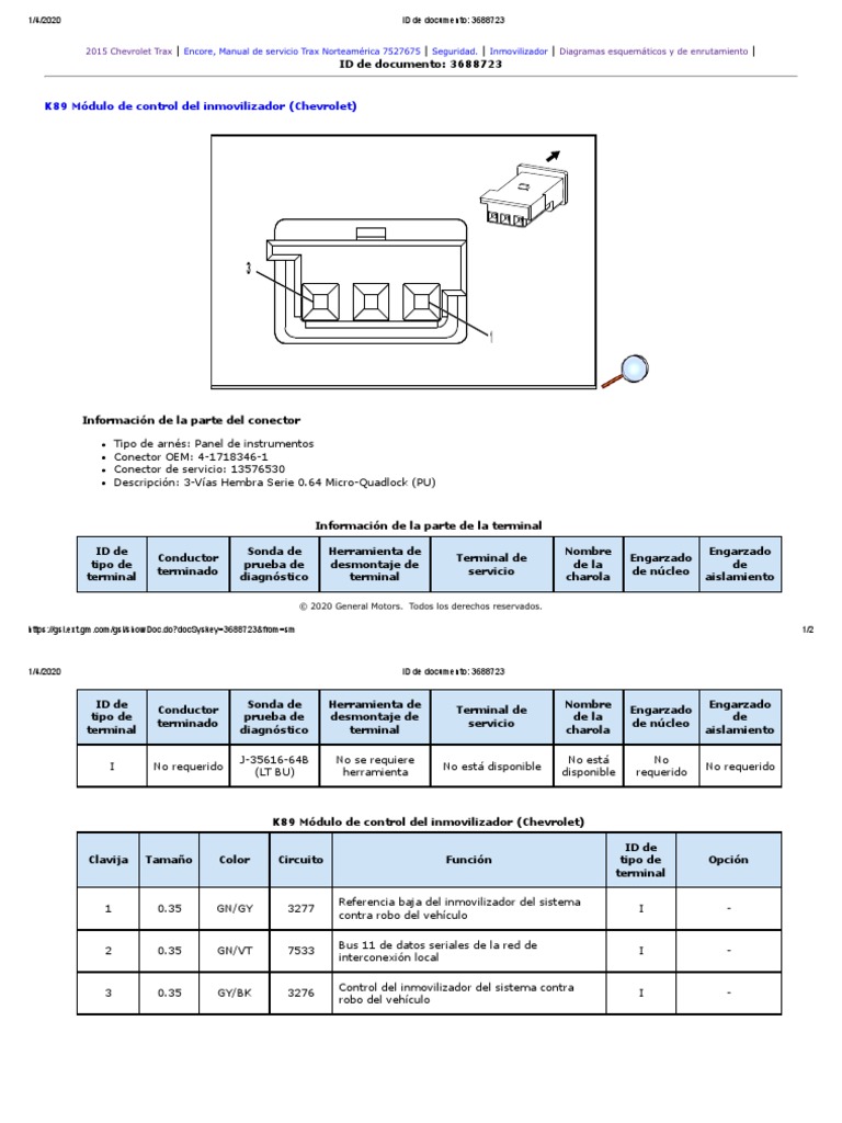 K89 Módulo de control del inmovilizador (Chevrolet)