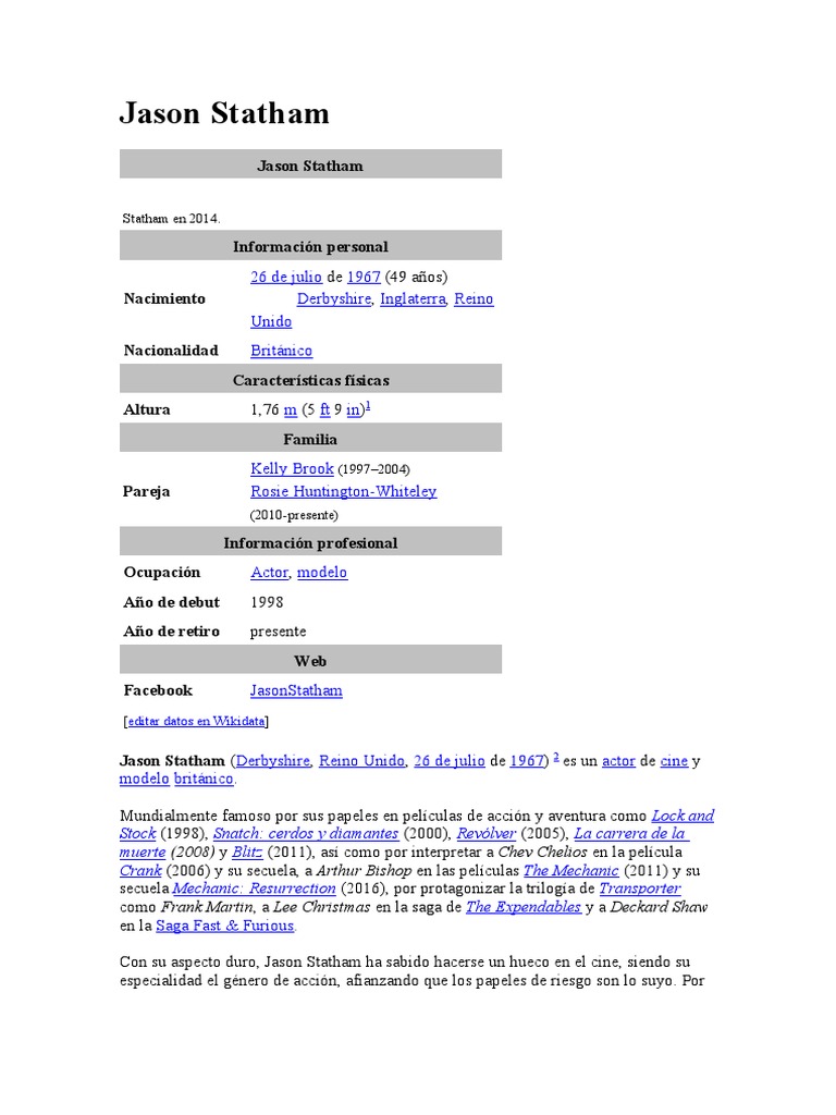 Jason Statham (Derbyshire, Reino Unido, 26 de julio de 1967) 2 es un actor de cine y