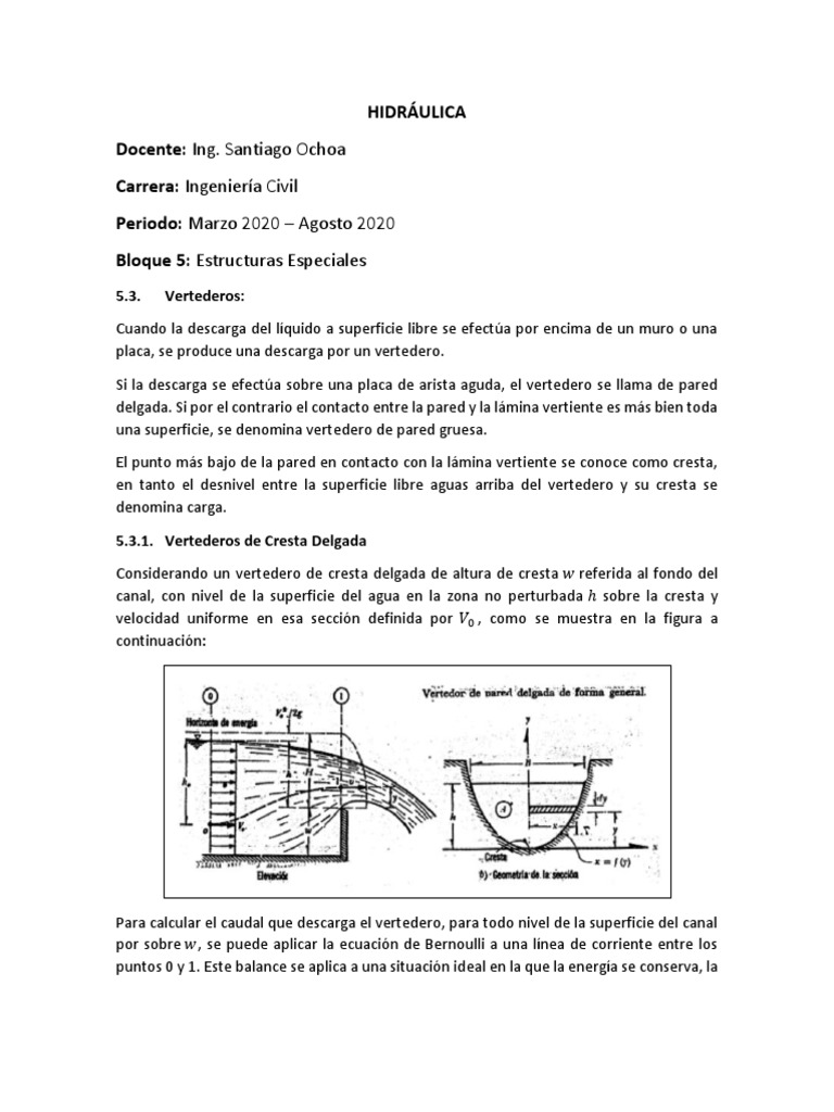 1) En un canal de 3.2 metros de ancho se ha instalado a todo lo ancho un vertedero