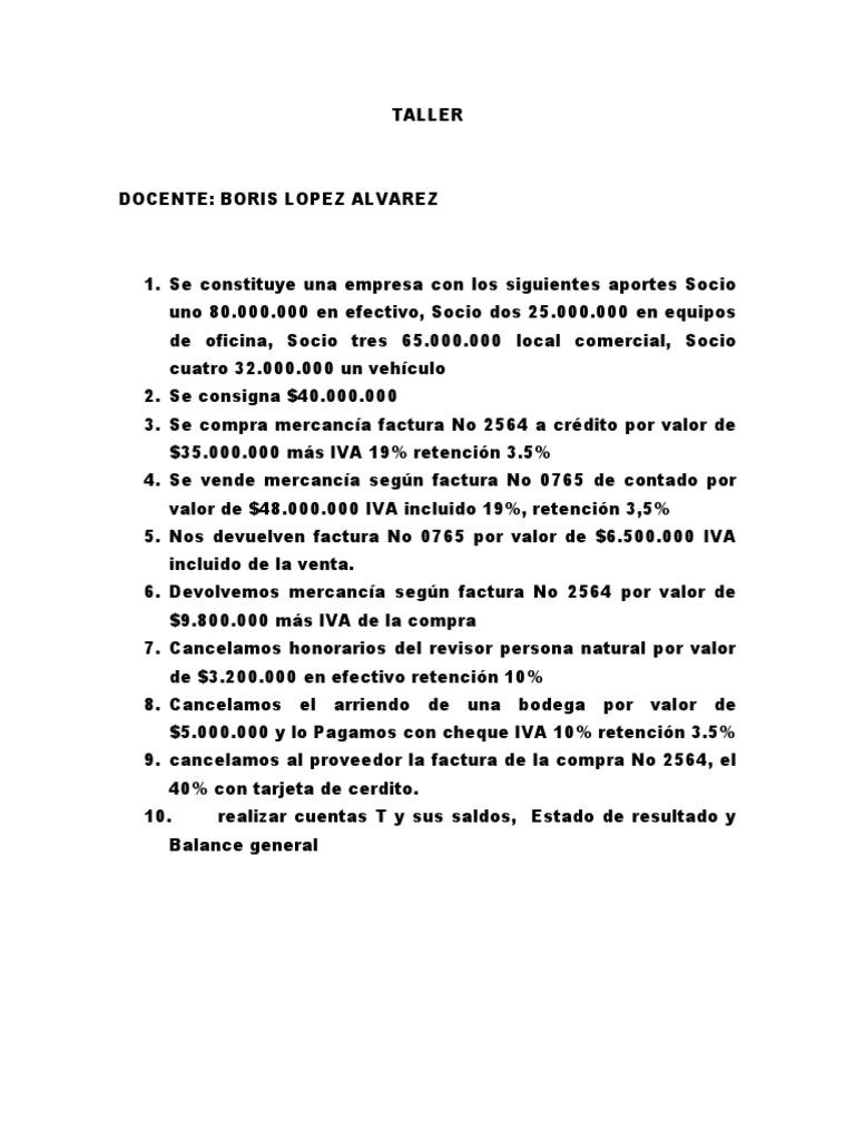 10. realizar cuentas T y sus saldos, Estado de resultado y