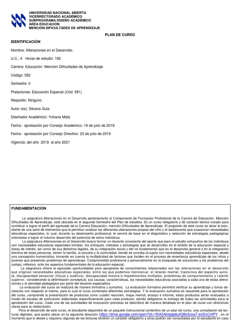 La asignatura Alteraciones en el Desarrollo perteneciente al Componente de Formación Profesional de la Carrera de Educación, Mención