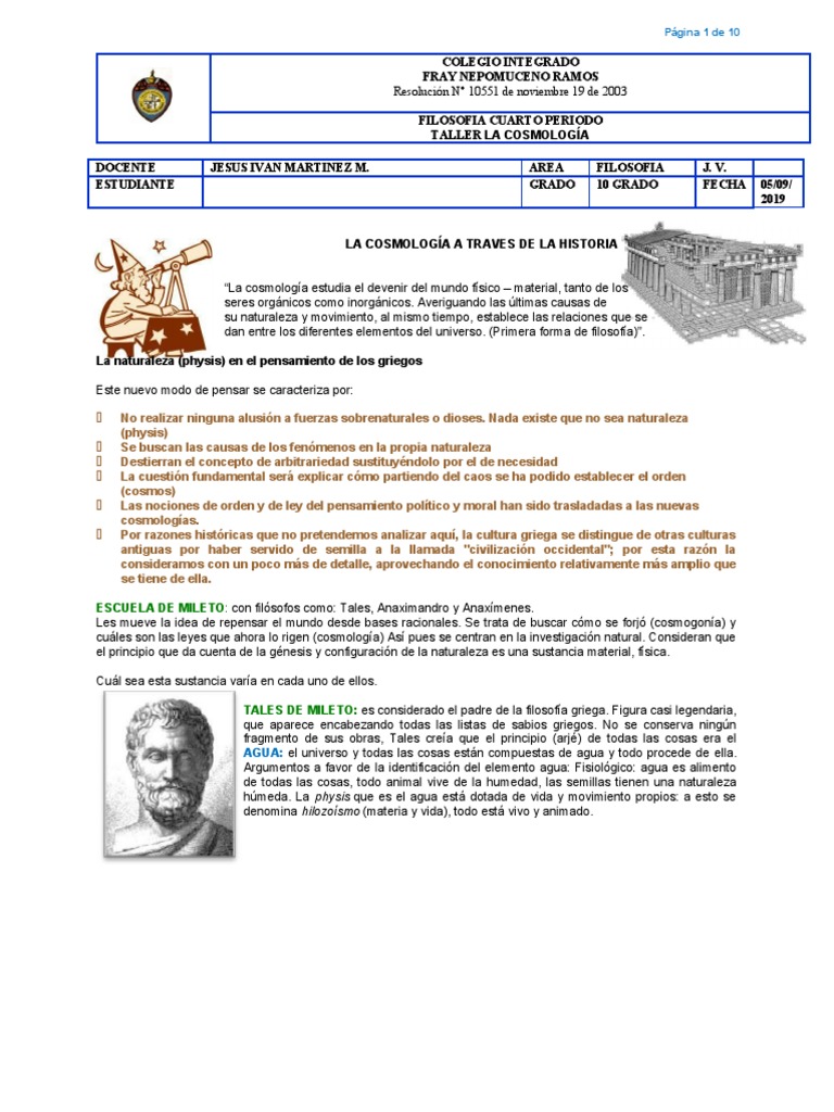 ESTUDIANTE GRADO 10 GRADO FECHA 05/09/
