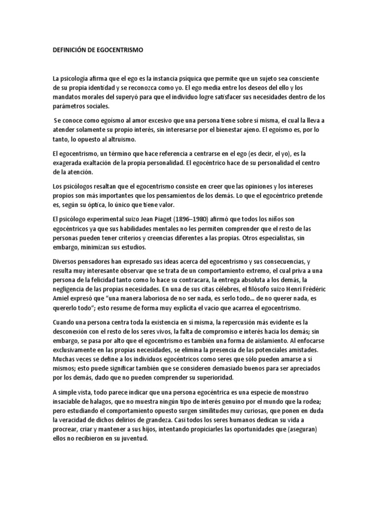 propios son más importantes que los pensamientos de los demás. Lo que el egocéntrico pretende