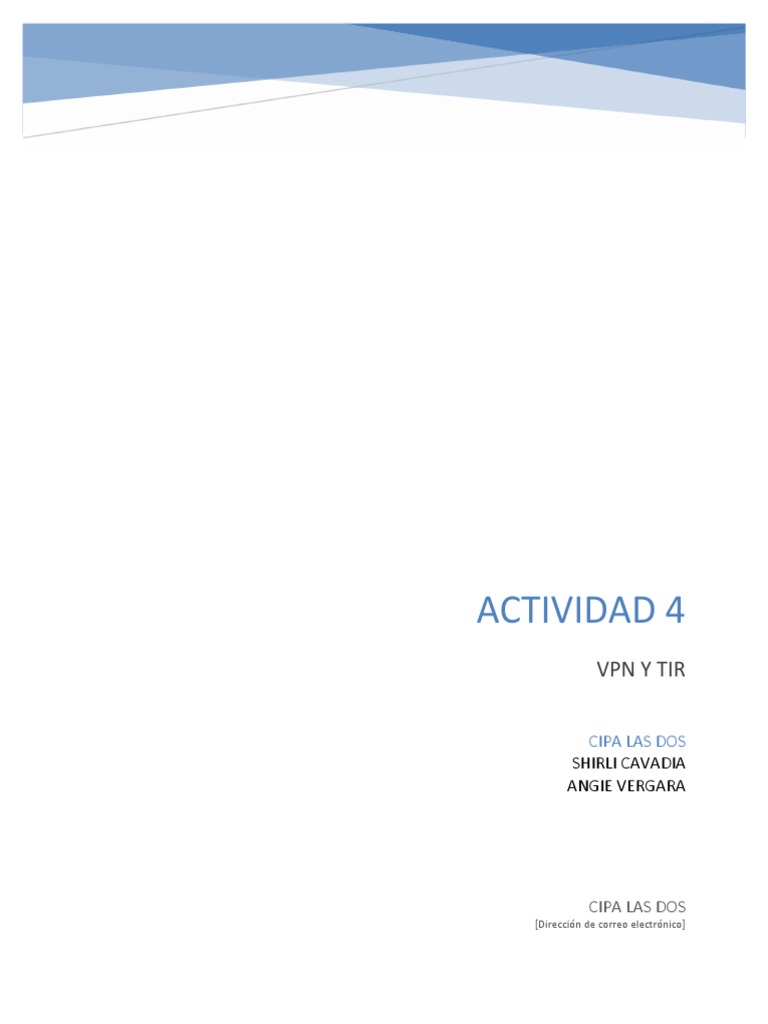 1. Calcular el Valor Presente Neto y la Tasa Interna de Retorno, de un