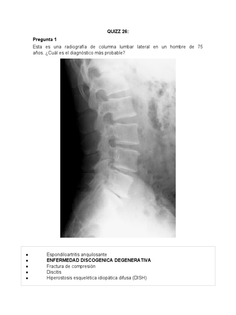 Esta es una radiografía de columna lumbar lateral en un hombre de 75