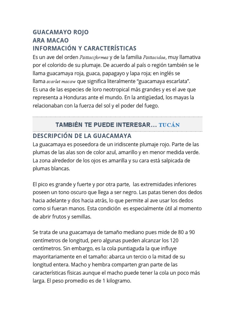 llama scarlet macaw que significa literalmente “guacamaya escarlata”.